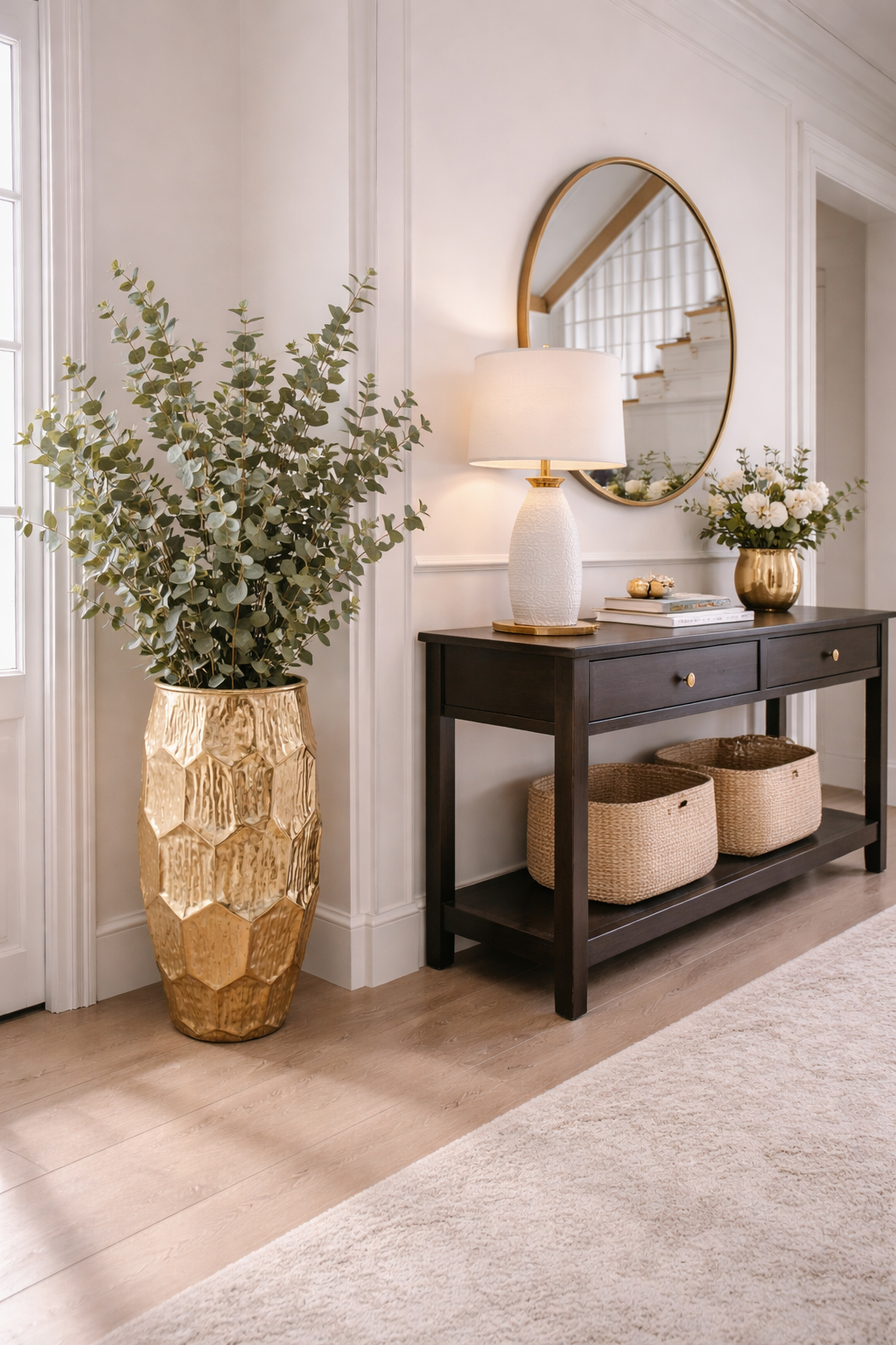 Метални и стъклени акценти + неутрални тонове
