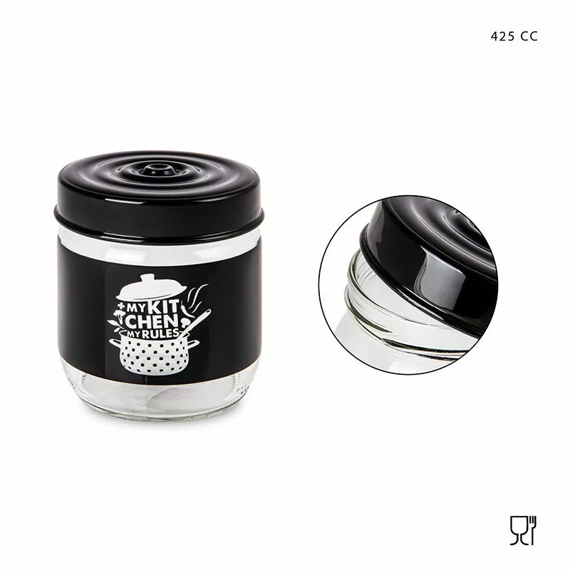Красив стъклен буркан за съхранение с вместимост от 425мл, удобен за организиране на продукти или пренасяне на течни храни, пюрета, сосове и други.