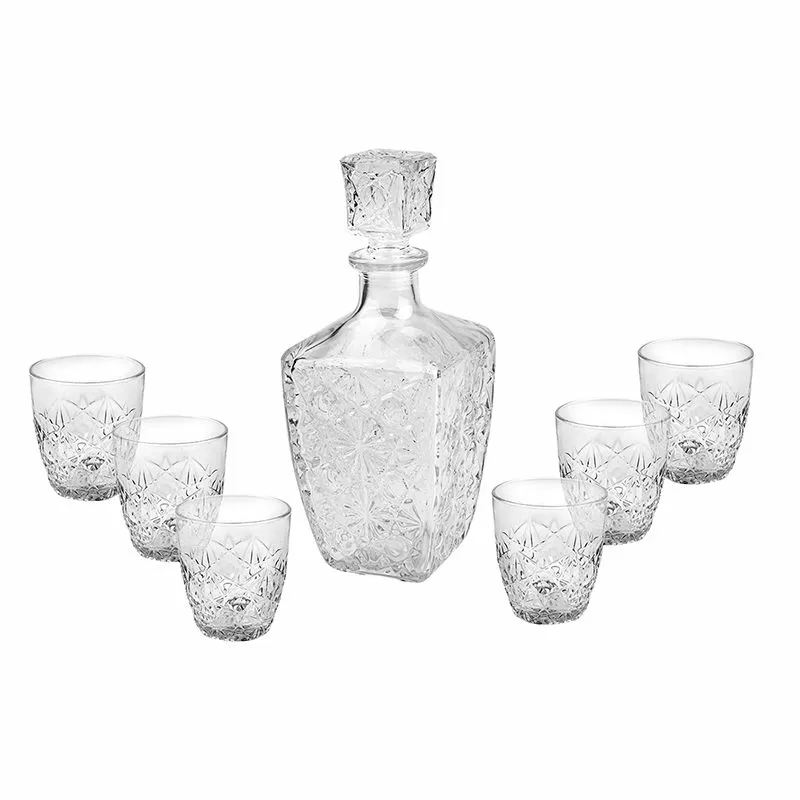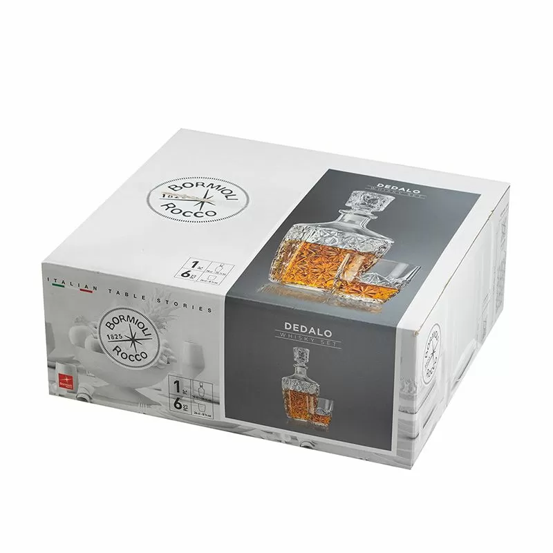 Комплект от 7 броя, състоящ се от декантер с капачка с вместимост 0.900мл и 6броя чаши за уиски с вместимост 260мл.Подходящи за съдомиялна машина. Впечатлете гостите си с този специален комплект или се поглезете с чаша от любимото си уиски.