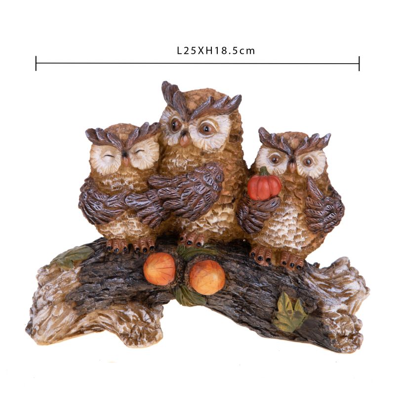 Декоративна фигура "Семейство бухали на клон" – полирезин, 3 бухала