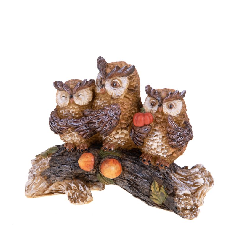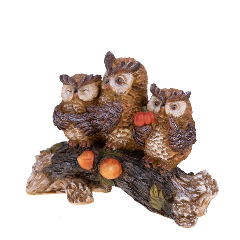 Декоративна фигура „Семейство бухали на клон“ – закачлив акцент с есенно настроение