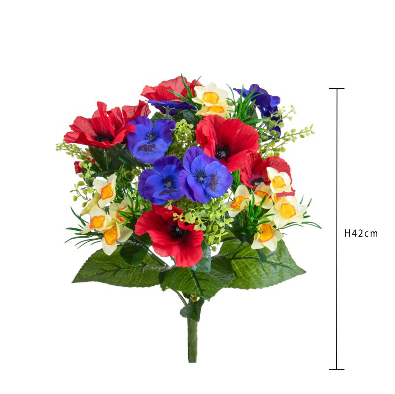 Декоративно Изкуствено Цвете букет с теменужки - за ценителите на деликатна и изискана декорация в жизнерадостни пъстри цветове. Оригинално, стилно, устойчиво решение да допълните интериора или да акцентирате както любимата ваза, така и зона в помещението.