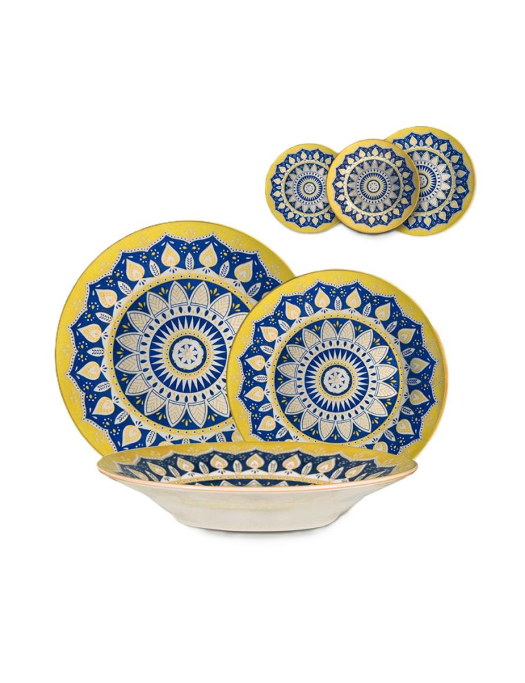 Елегантен и изискан комплект посуда: Medina Yellow 18-частов сервиз за хранене, за винаги безупречна и приветлива маса.